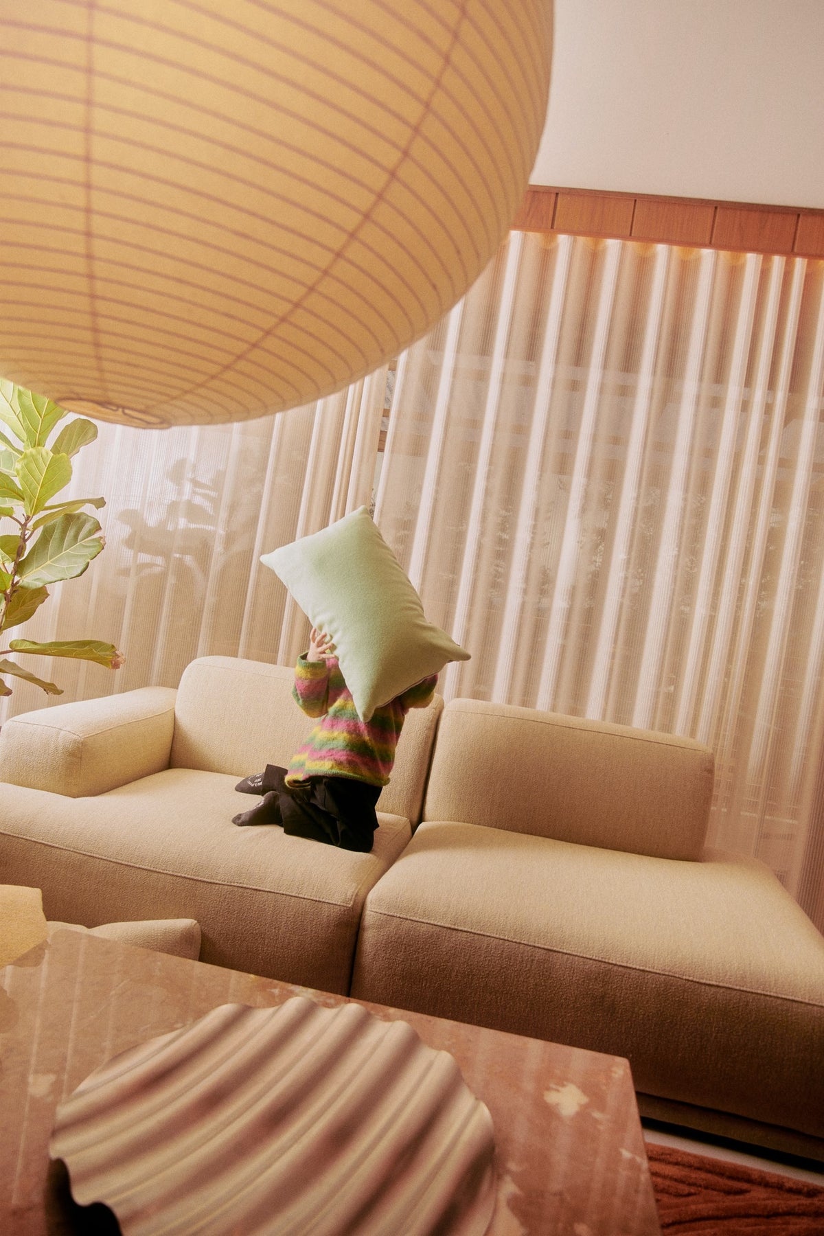 We combine light interiors with wooden panels, but we have a steel kitchen as well, so we break up the hard feeling with warmth and light. Because I spend so much time every day here, it's almost like my playground for inspiration. If I get creative block because I’m spending too much time online, I go to the shelf and take out an old magazine or go for a walk. I’m always trying to curate the things we have, because you come to a point where you don’t need more stuff. I’m trying to be more selective, to create emotional memories with the stuff we already have.