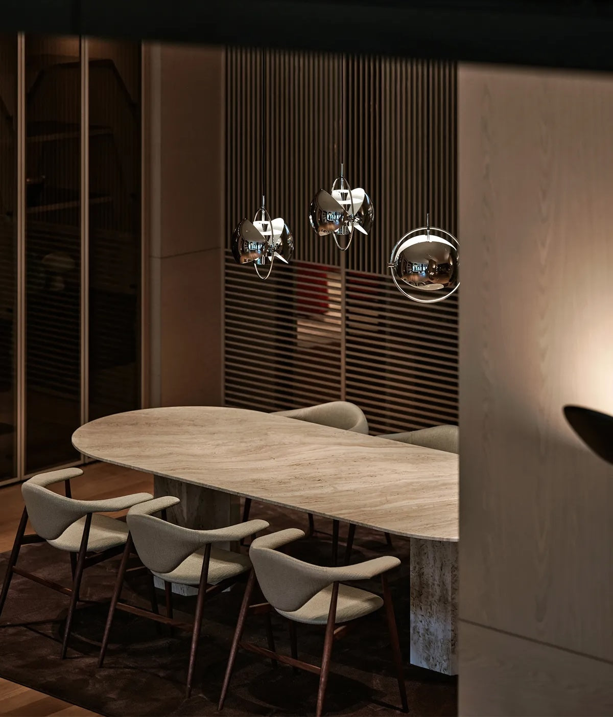 “The Pium Pendant has this beautiful balance of delicacy and presence - it feels almost feather-light, yet anchors a room with such quiet confidence. In my recent Sydney project, I loved how it became the gentle hero above the dining table, casting a soft, inviting glow that draws people in.”