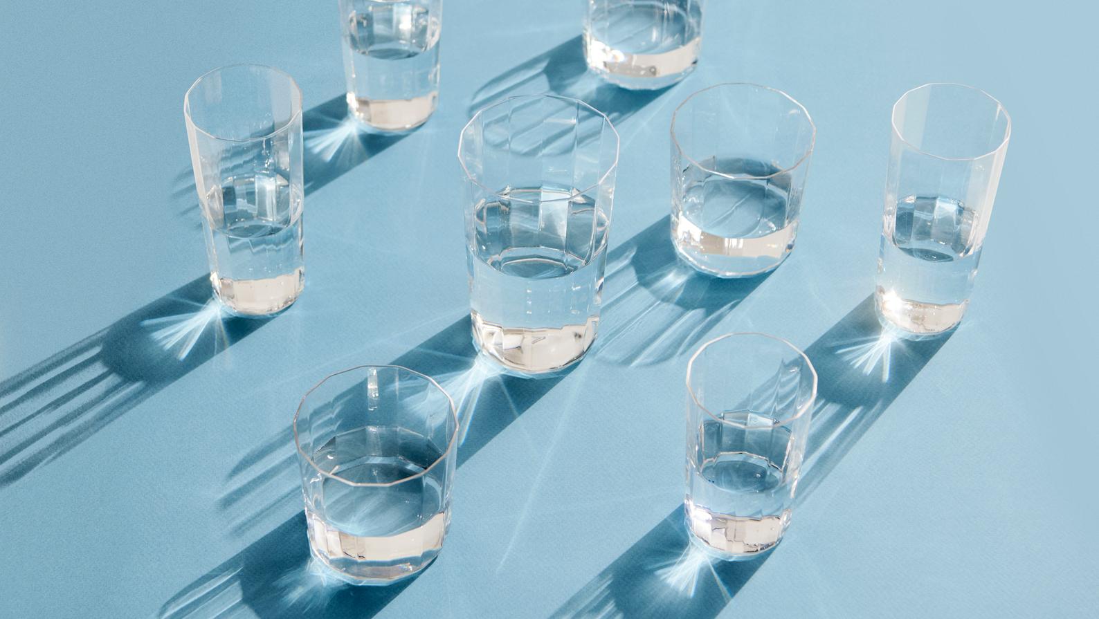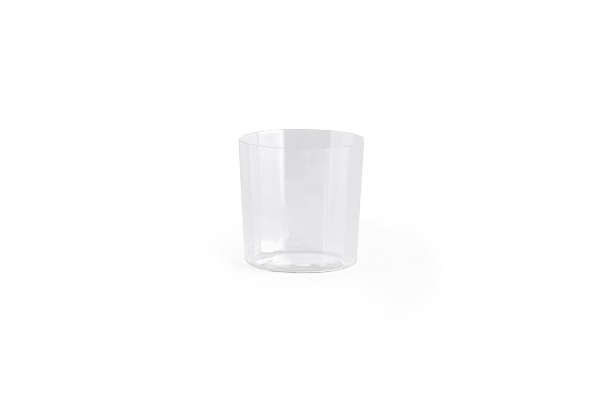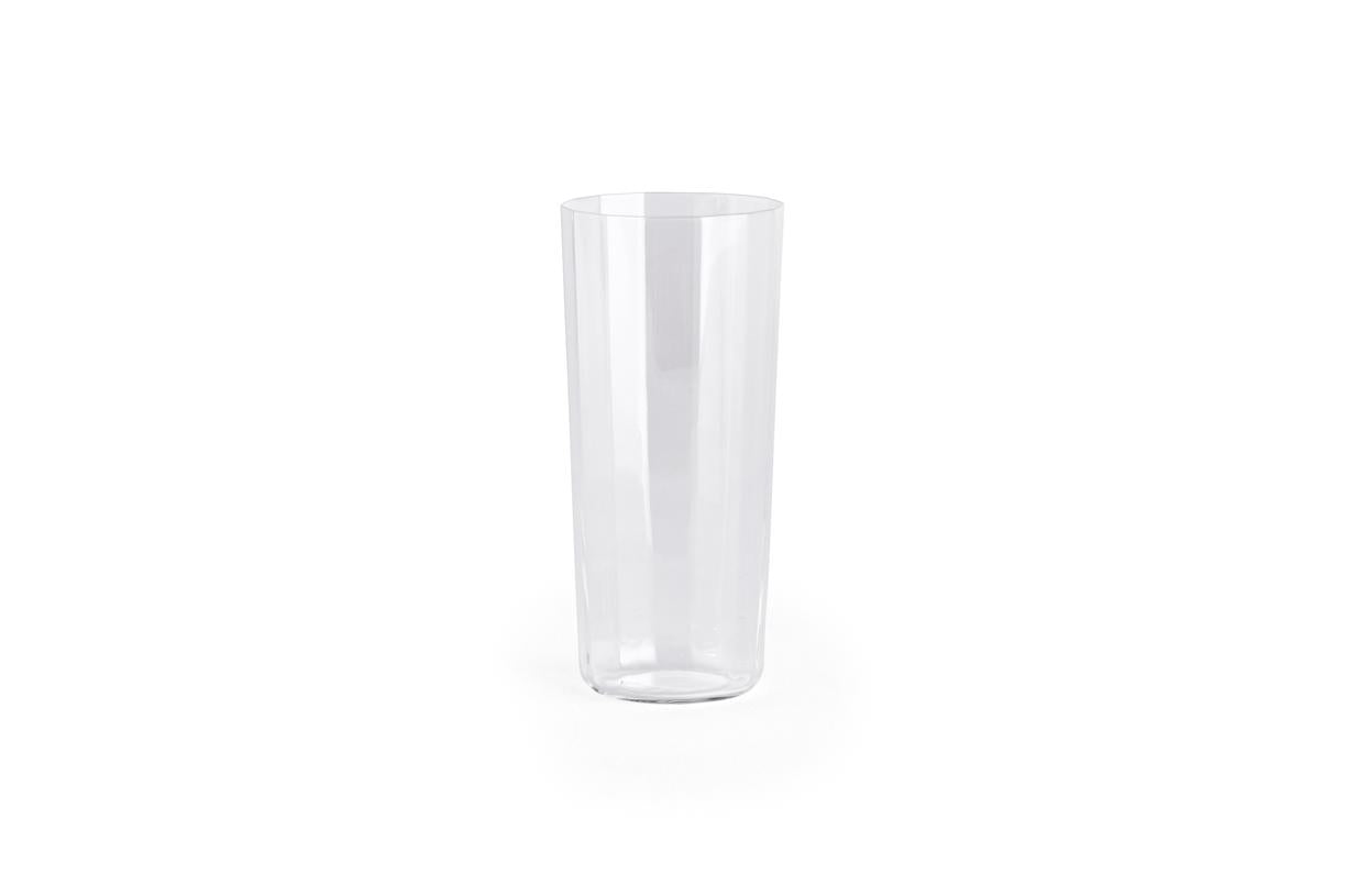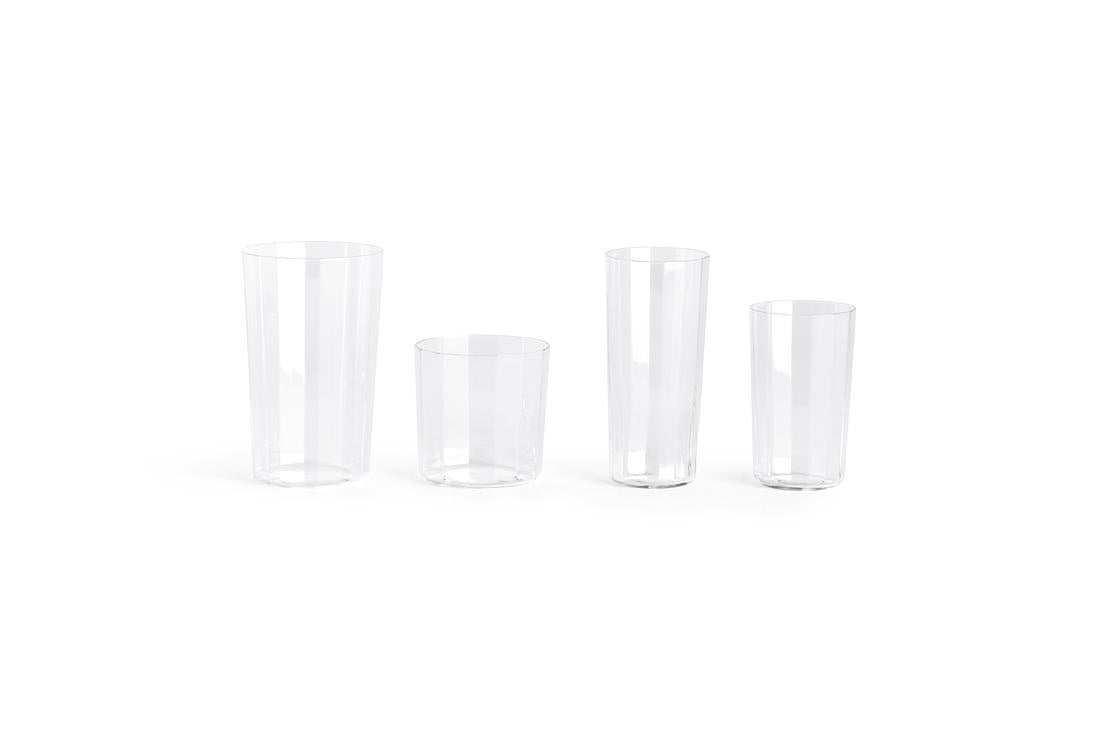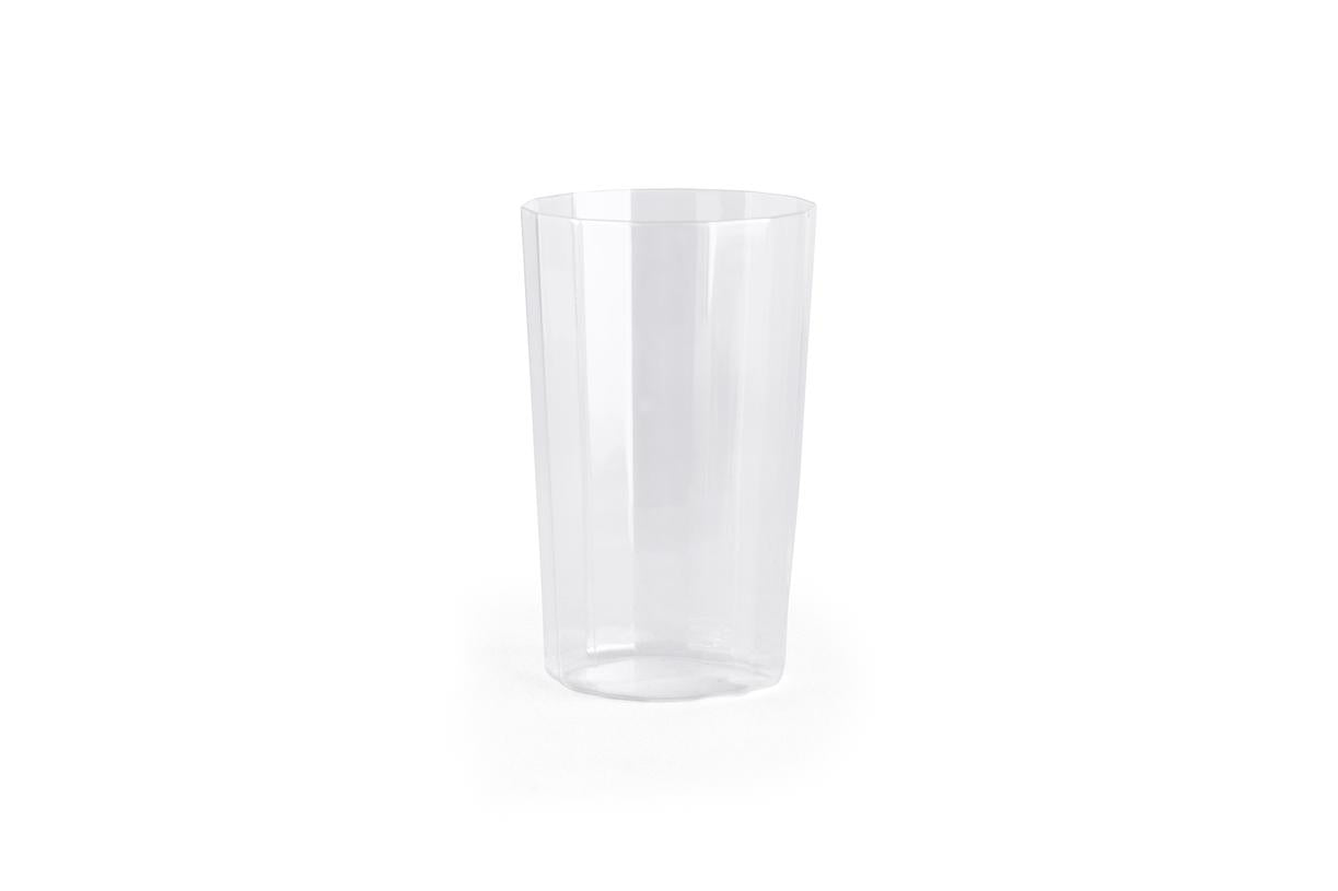 Angle Glass is made in thin glass with faceted sides, creating a simple yet elegant expression that elevates table settings. Available in different sizes and shapes that are easy to stack, the versatile glasses can be used for a variety of beverages for both everyday use and special occasions.