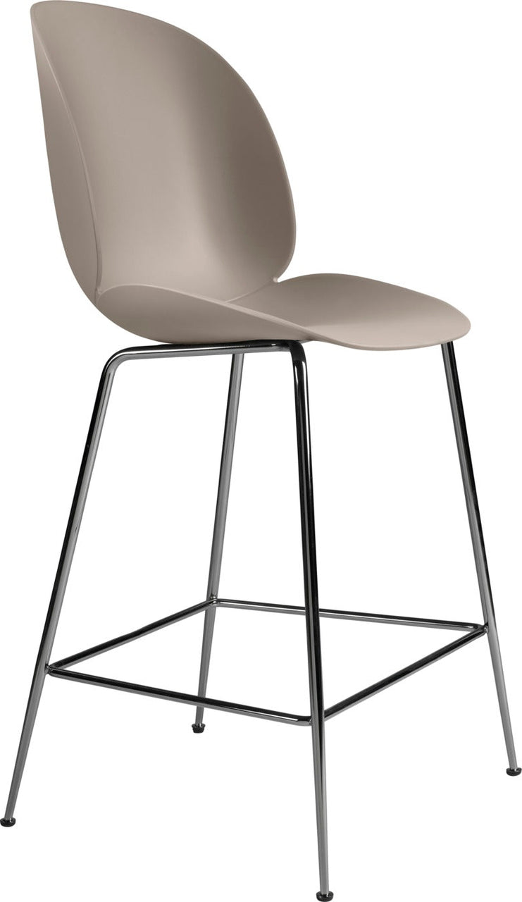 GUBI's Un-Upholstered Beetle Counter Chair, designed by GamFratesi, is available in a wide range of coloured shell options. The design balances traditional and surprising, a Scandinavian approach to crafts, simple yet functional. This un-upholstered version of the bar chair is perfect for the home, especially for young families, as the polypropylene plastic shell is very easy to clean, with no worry about stained fabric.