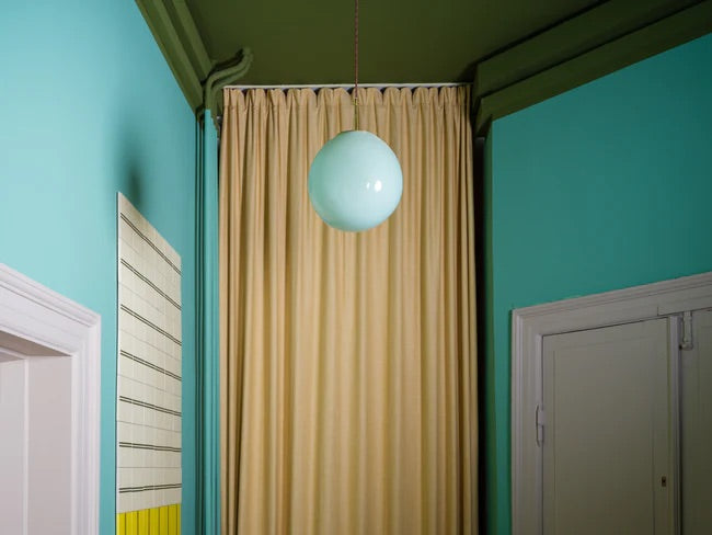 As a designer, Helle Mardahl is concerned with the contrast between shapes and hard materials. The Bon Bon Pendant lamp is the perfect objectification of that vision. With its organically shaped silhouette, the lamp is an alluring object to hang from the ceiling. The delicious candy colours make the light that shines through the glass warm and alive.