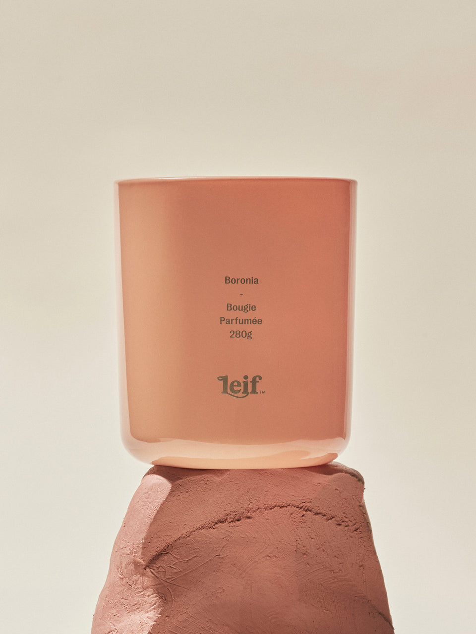 (280GM) Soy blend wax handcrafted in Australia delivers grounding aromatics of Boronia to your home. Elegantly housed in glass vessels and wrapped in a gift box wearing bold graphics.
