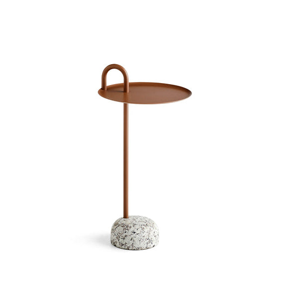 Shane Schneck's Bowler Table is a compact side table that is ideal for small spaces. The single tube that extends upwards creates a defined profile, which doubles as a functional handle too. The stem, handle and tray are made in powder coated steel, with a solid granite base that provides stability, yet it is still lightweight enough to move around. Bowler comes flat packed and is easy to assemble, making it suitable for all kinds of domestic and corporate environments.