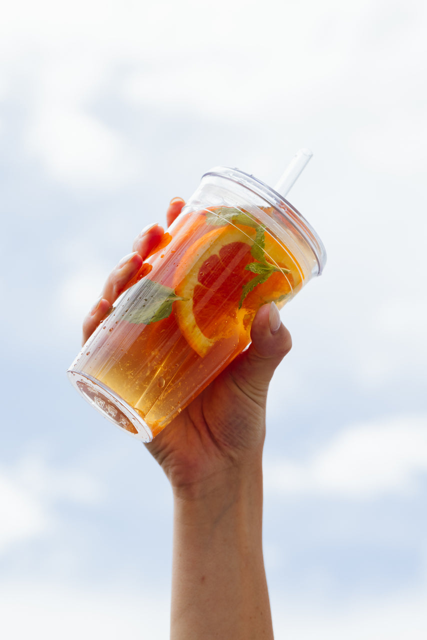 Materials: Clear co-polyester 50% Tritan Renew cup, lid and straw, silicone gasket.