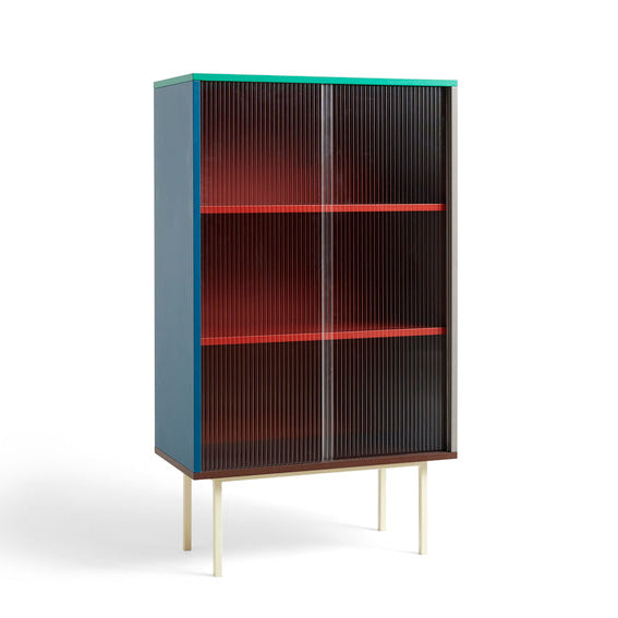 Designed by Belgian designers Muller Van Severen, the Colour Cabinet Tall is a series of vertical storage units that balance a clean, minimalist design with vibrant colour. The cabinet body is crafted from organically dyed Valchromat® – a unique, robust MDF material that is FSC™-certified (FSC-C148805) – combined with sliding glass doors and a durable steel supporting frame. Available in both mono- and multi-colour options, the cabinet’s versatile design and multiple shelves make it ideal for a variety of storage and display needs in both private and public spaces.