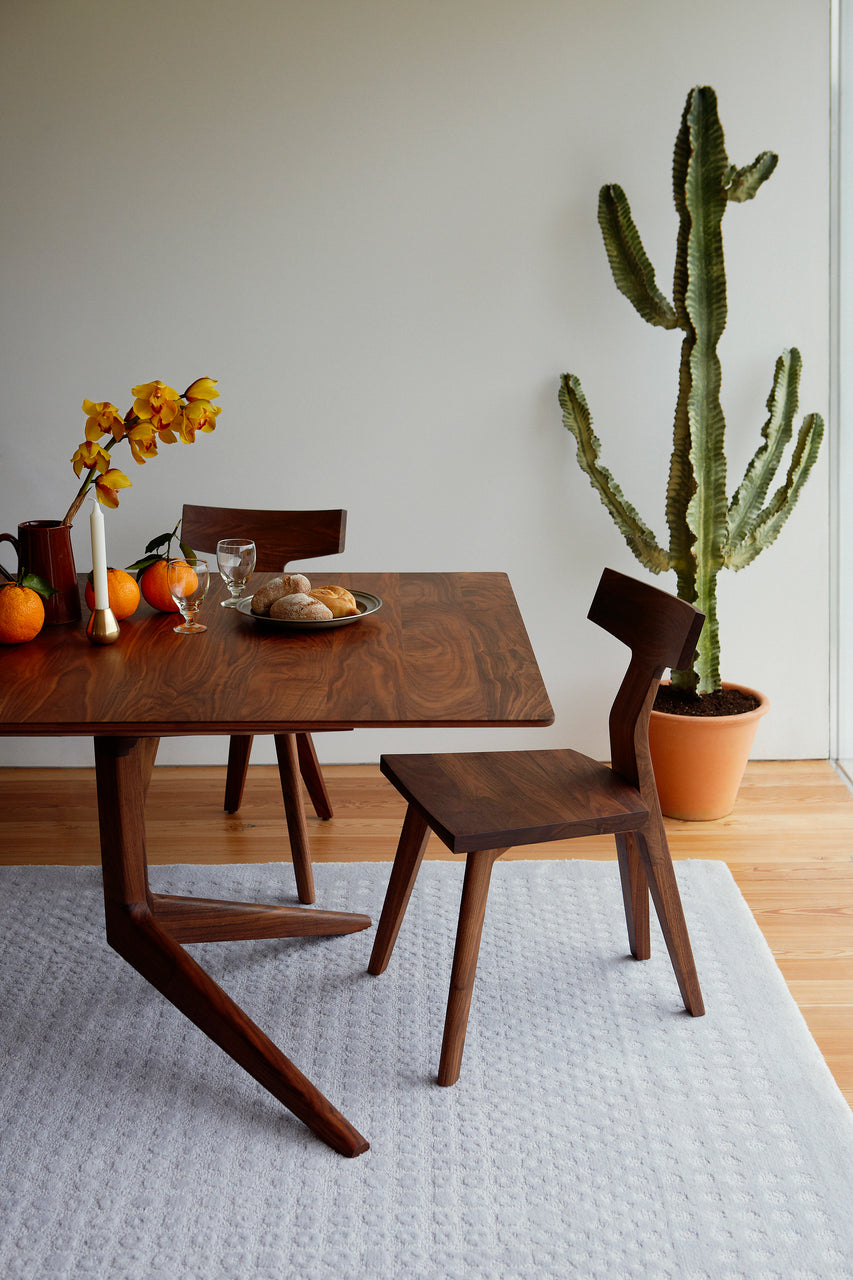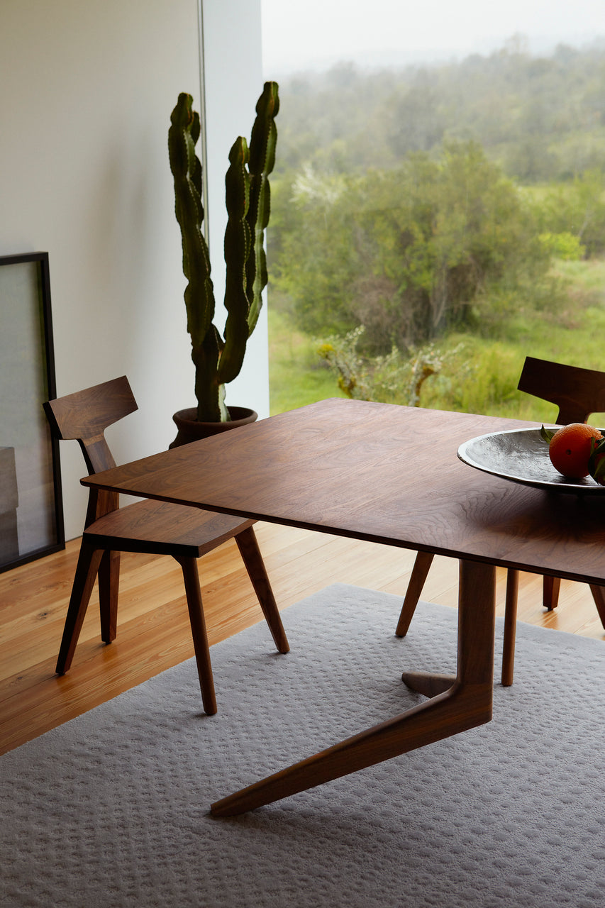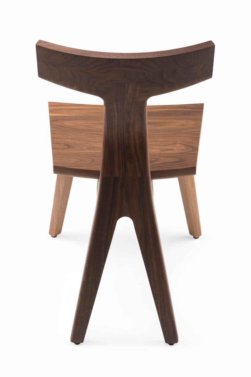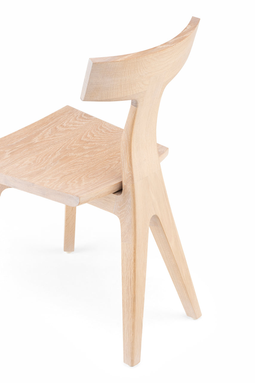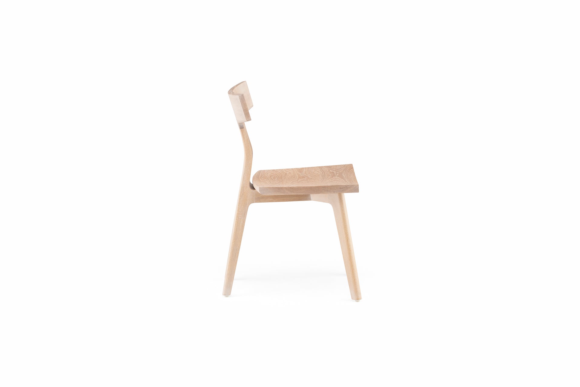 Fin Dining Chair is an iconic Matthew Hilton design, its sculptural solid wood form rigorously engineered and detailed for beauty from every angle. Particularly stunning from behind, Fin is named for the shape of the backrest which emerges from the legs as a fin from the sea.
