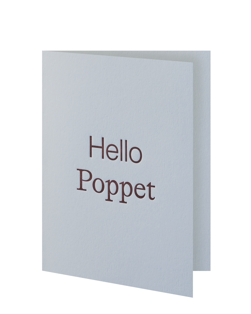 Welcome little one. Whether it be a new baby or fur child, say hello. Letter pressed by hand in deep burgundy copy on a lush, textured pale blue coloured stock.