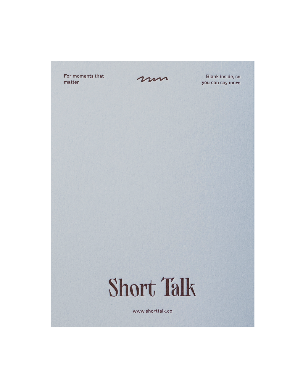 Materials: All cards have been mindfully made and printed in Melbourne. Short Talk cards measure 5.5inches x 4.25 inches and come with a premium paper vellum envelope meaning they are slightly sheer so you can see through to the word detailing on the front of the card.