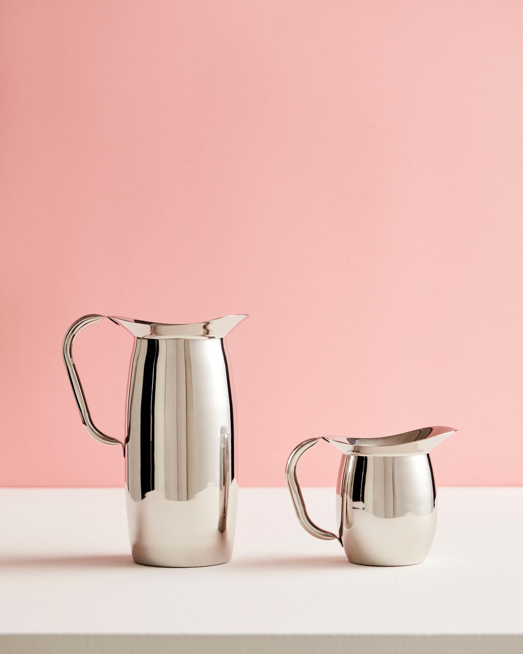 Featuring a slim handle and wide-rimmed spout for easy pouring, HAY’s Indian Steel Pitcher offers an uncluttered yet functional design. Made in India from stainless steel with a shiny silver surface.