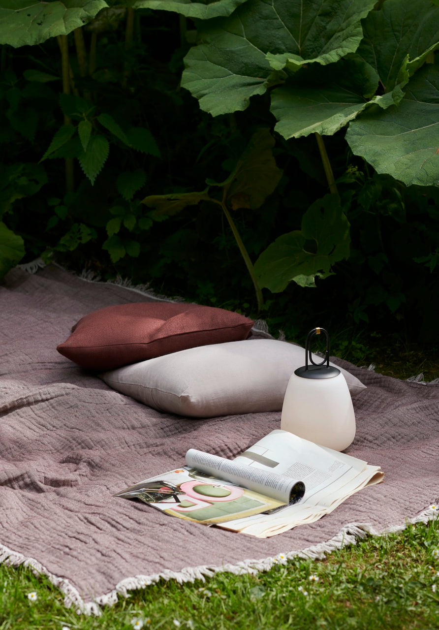 This elegant portable lamp, inspired by the golden glow of the Tuscan city of Lucca, mimics the warmth of the city’s nocturnal light. Intended as a multipurpose piece, the battery-powered Lucca lamp easily transitions from indoors to outside. It can operate for up to 12 hours and is easily recharged with a USB cable.