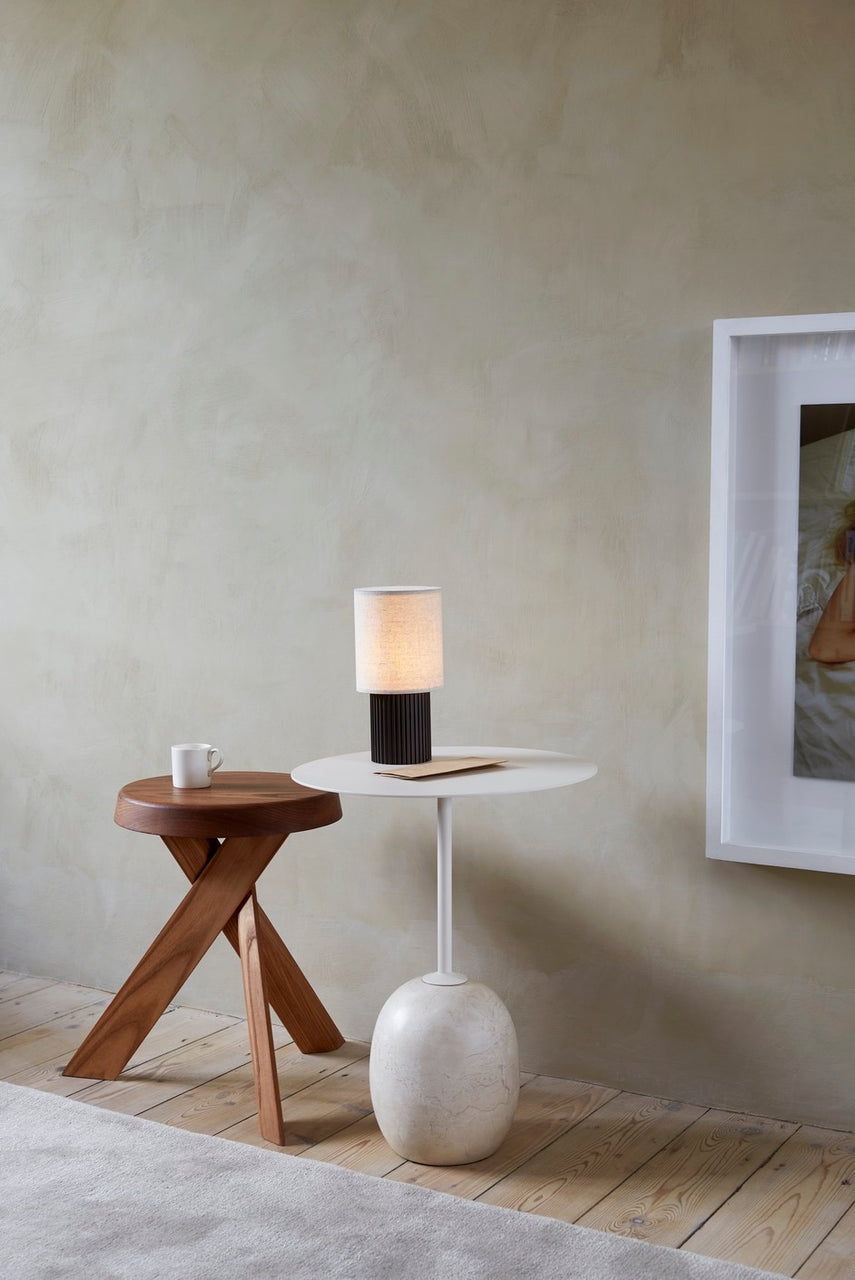 Set the mood with Space Copenhagen’s dimmable Manhattan lamp. Its anodised aluminium base with columned detailing and a canvas shade combine to emit an inviting glow. With three dimmable light functions, this portable lamp becomes a versatile addition to every environment, operating for eleven hours at the highest setting.
