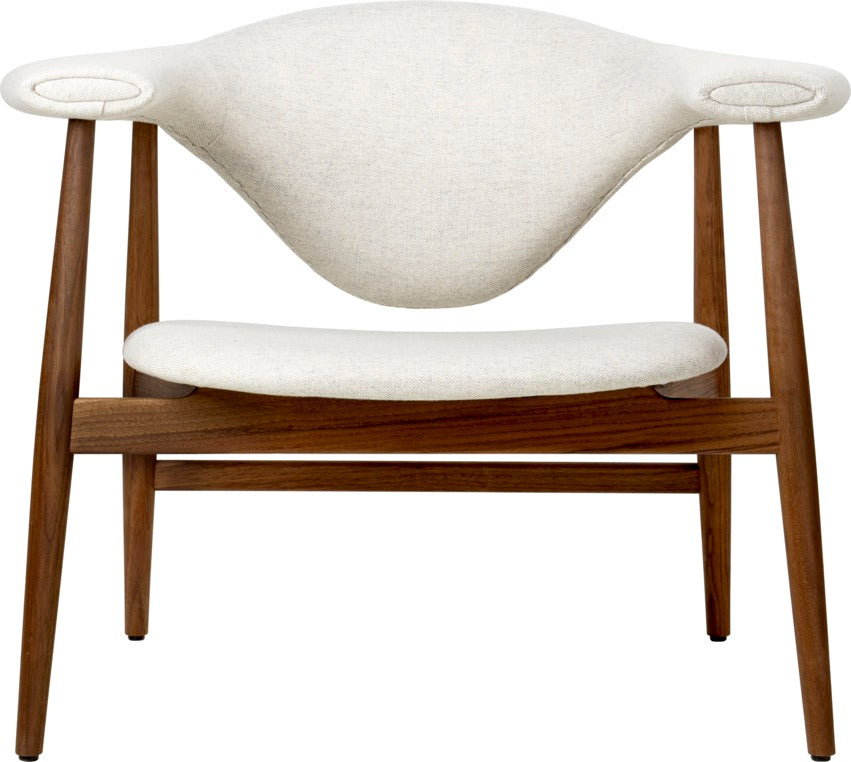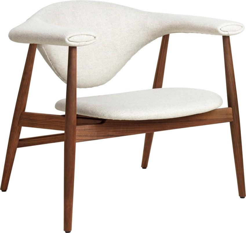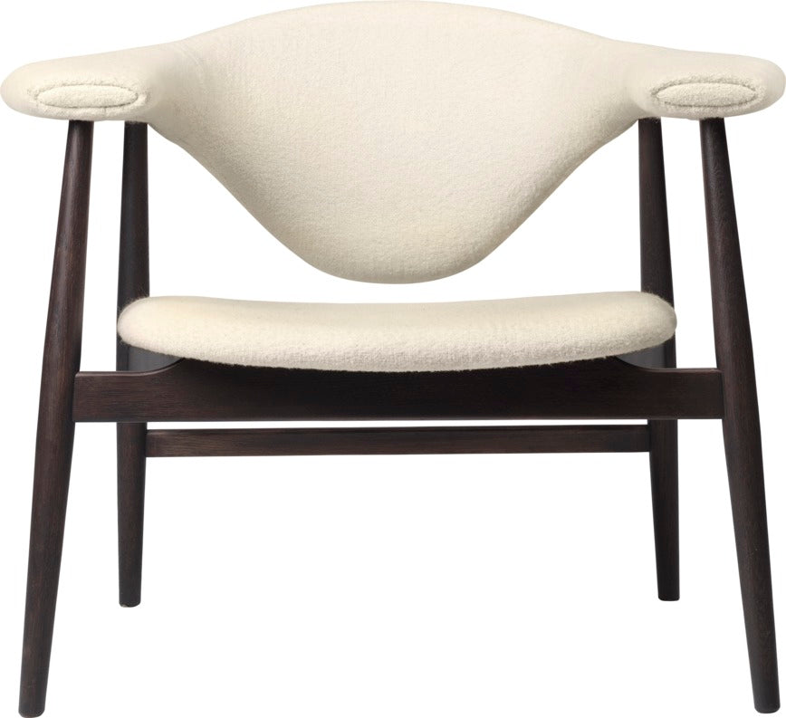 The Masculo Lounge Chair by GamFratesi marries Danish elegance and simplicity with Italian refinement and playfulness. The backrest of Masculo is almost overly large, which calls to mind a bull, and appears to float in the air and challenges all senses. Slender legs make the whole chair almost sculptural and exciting to the eye. The upholstered chair ensures a high level of comfort, while its clean legs and sophisticated form lend the chair a graceful presence.