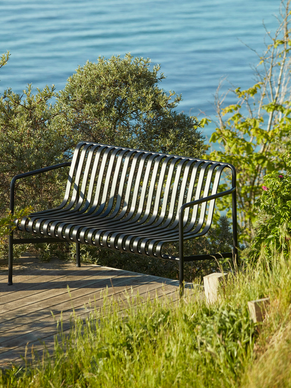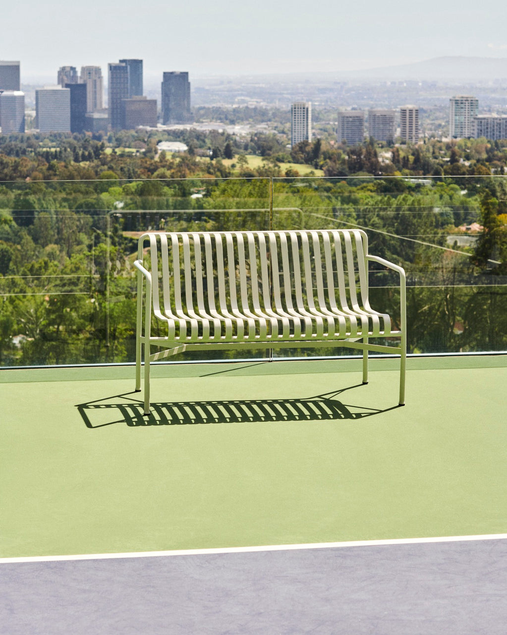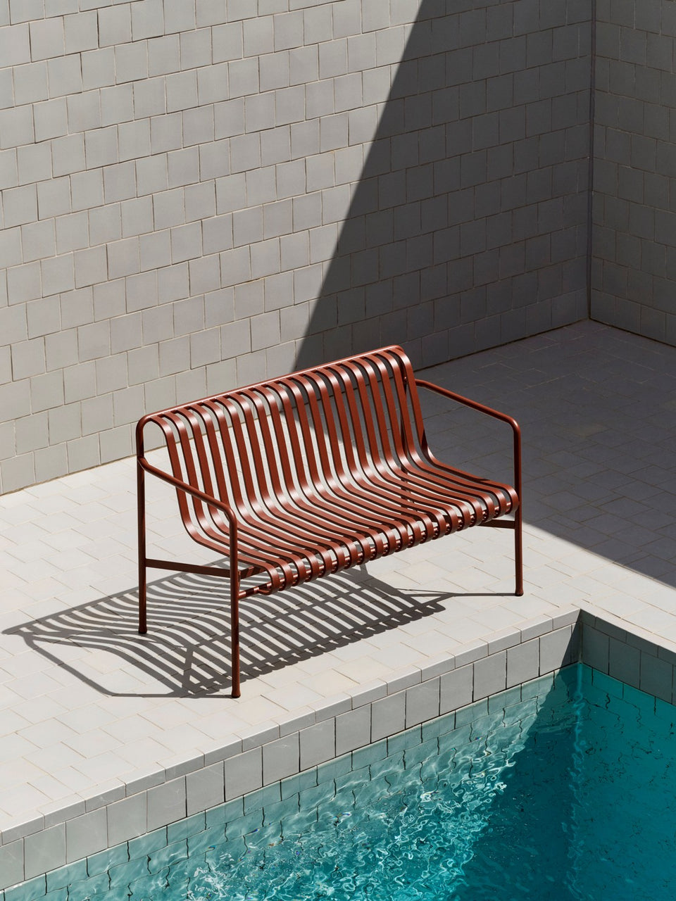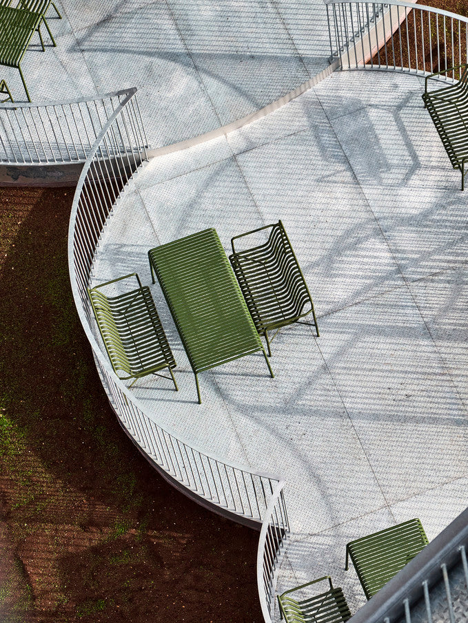 Palissade is a collection of outdoor furniture designed by Ronan and Erwan Bouroullec for HAY. The collection was designed to fit a wide variety of environments: cafés, restaurants, gardens, terraces and balconies. The construction allows a wide range of typologies with a common formal language. From stools and benches to chairs and tables, lounge chairs and sofas – the collection comprises 13 different elements, united not only by their graphical image but also by their common characteristics: they are strong without being bulky, elegant without being fragile.