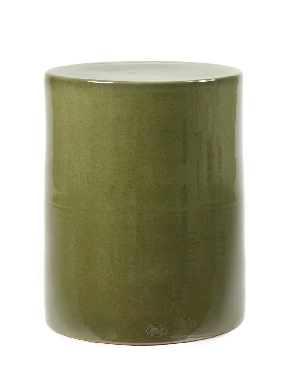 Made of glazed stoneware in a subdued grey hue, this 'Pawn' side table or stool adds a touch of elegance to any interior. The horizontal ridges not only make it aesthetically engaging but also provide a grip for effortless handling. Designed by Marie Michielssen
