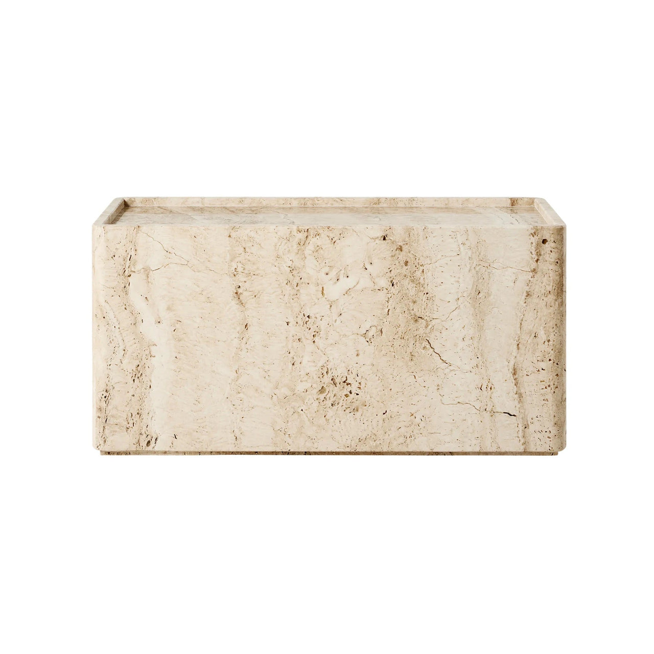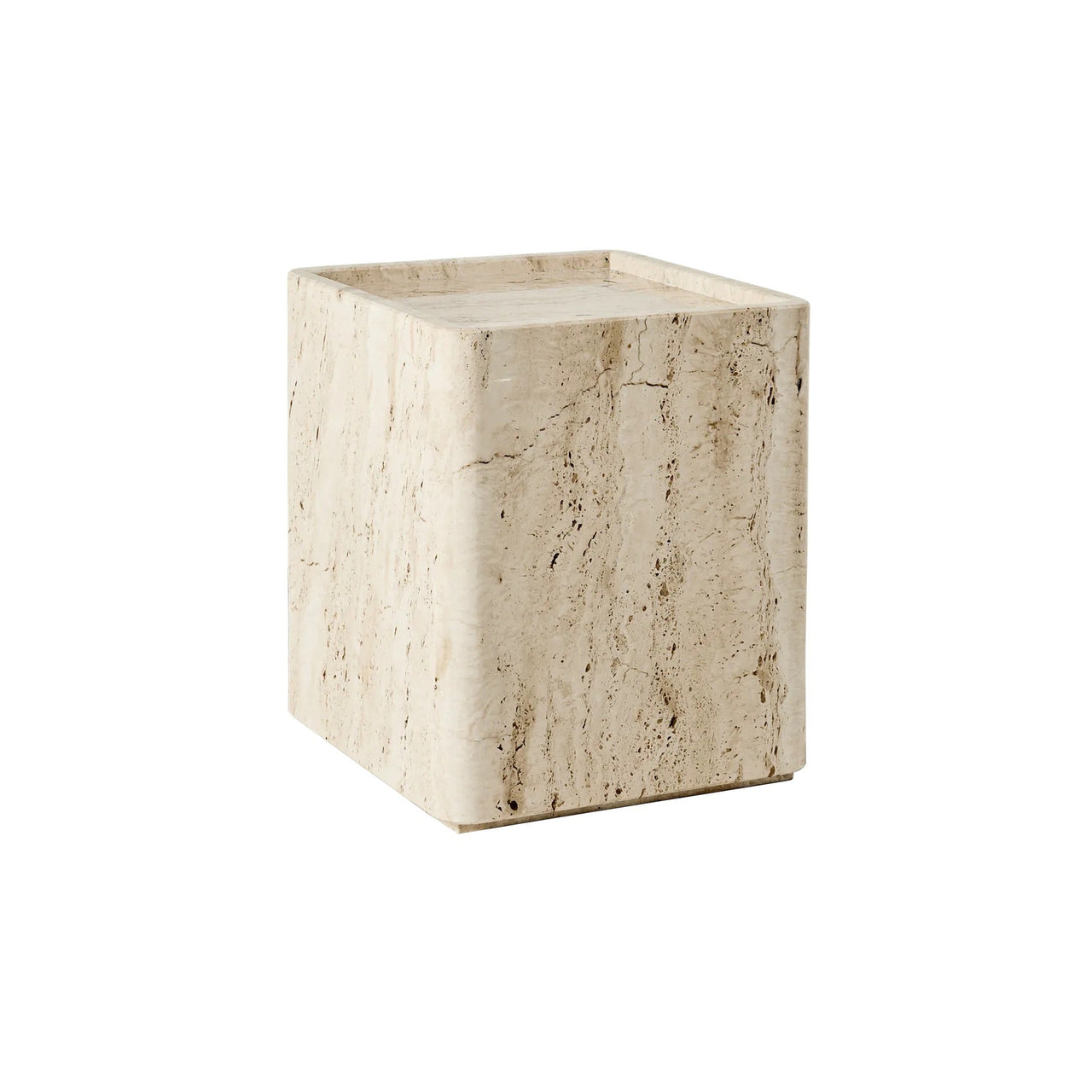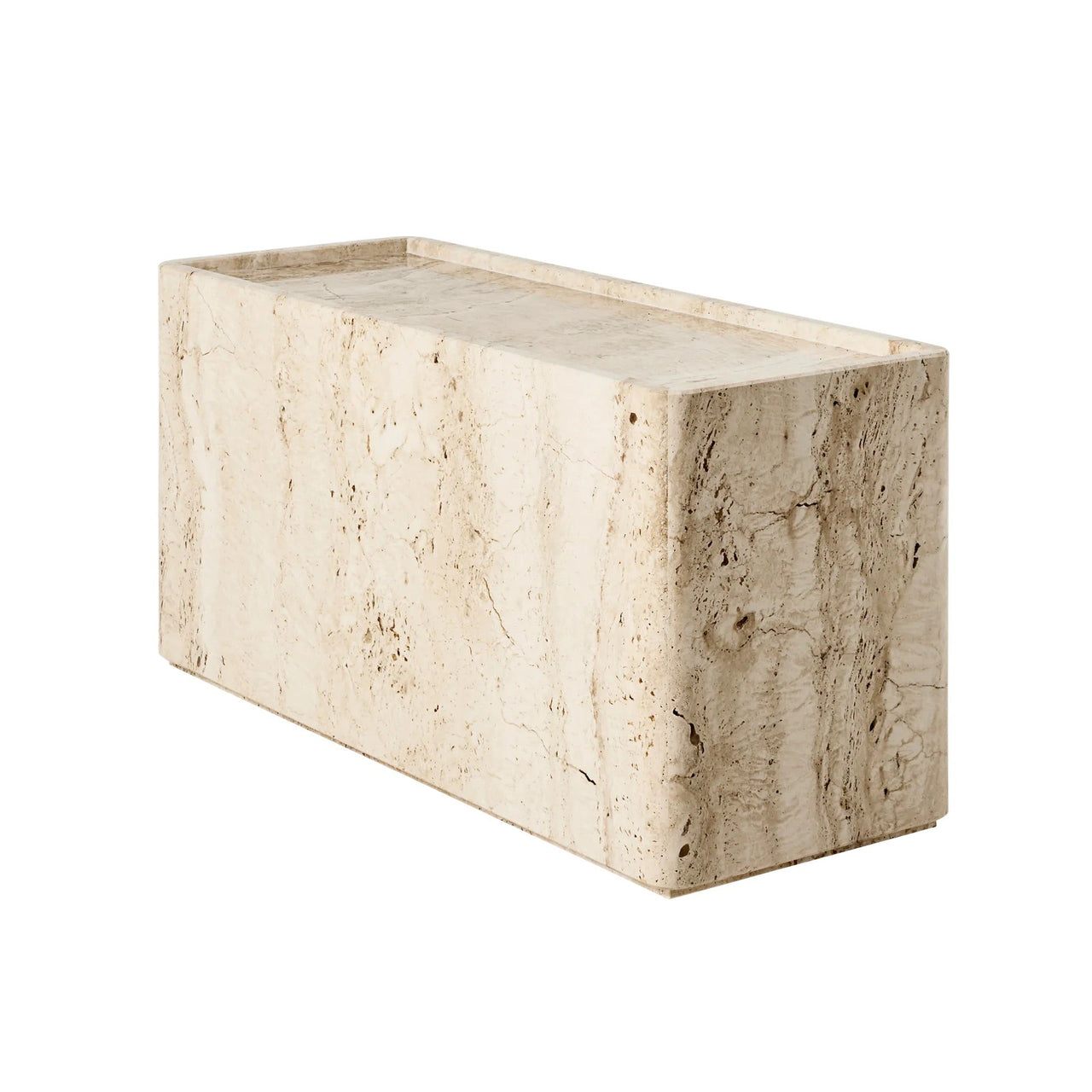 Continuing GamFratesi’s material exploration of travertine that began with the Epic and Doric Tables, the Pietra Side Tables celebrate the mesmerizing patterns found in the surface of the stone. Available in two sizes and two colors, the tables are deceptively lightweight, each constructed by hand from six pieces but resembling solid blocks. A raised lip around the gently curving edge of the tabletop creates a useful tray-like surface, ideal for displaying objects or placing a glass securely. Carefully cut, fitted, and finished, the curved edges and corners exemplify the extraordinary level of craftsmanship behind the table, and imbue the stone with a sense of softness.
