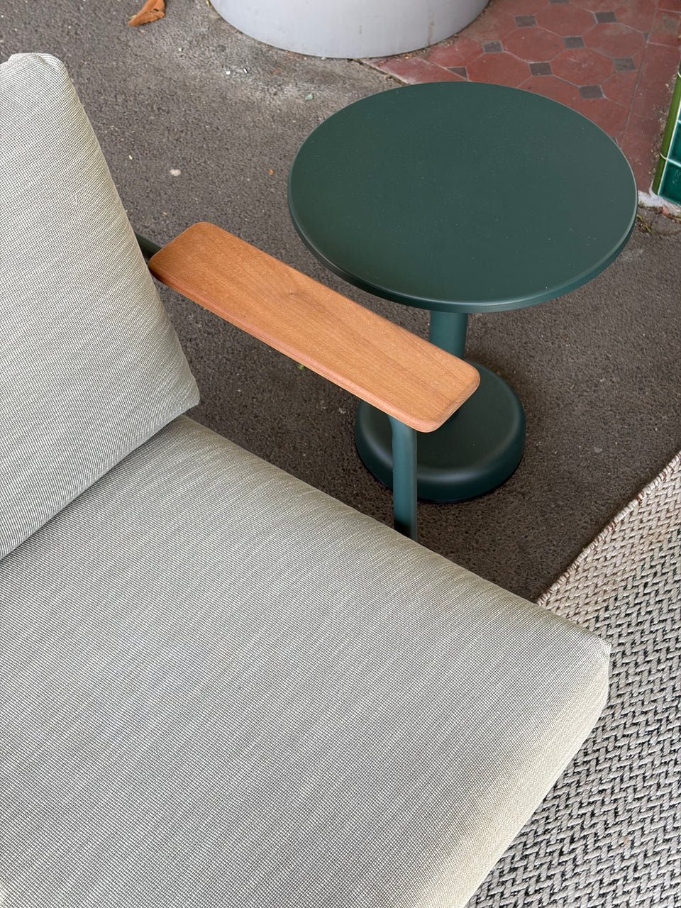 Seat cushion: Multiple layers of outdoor-suited foam provide enhanced support and comfort. The foam is wrapped in wadding and an inner lining and then upholstered with the final textile upholstery. An anti-slip feature keeps the cushions securely in place.