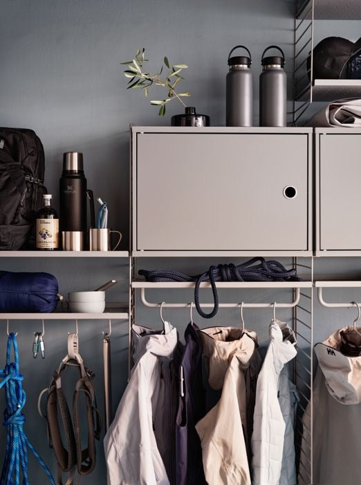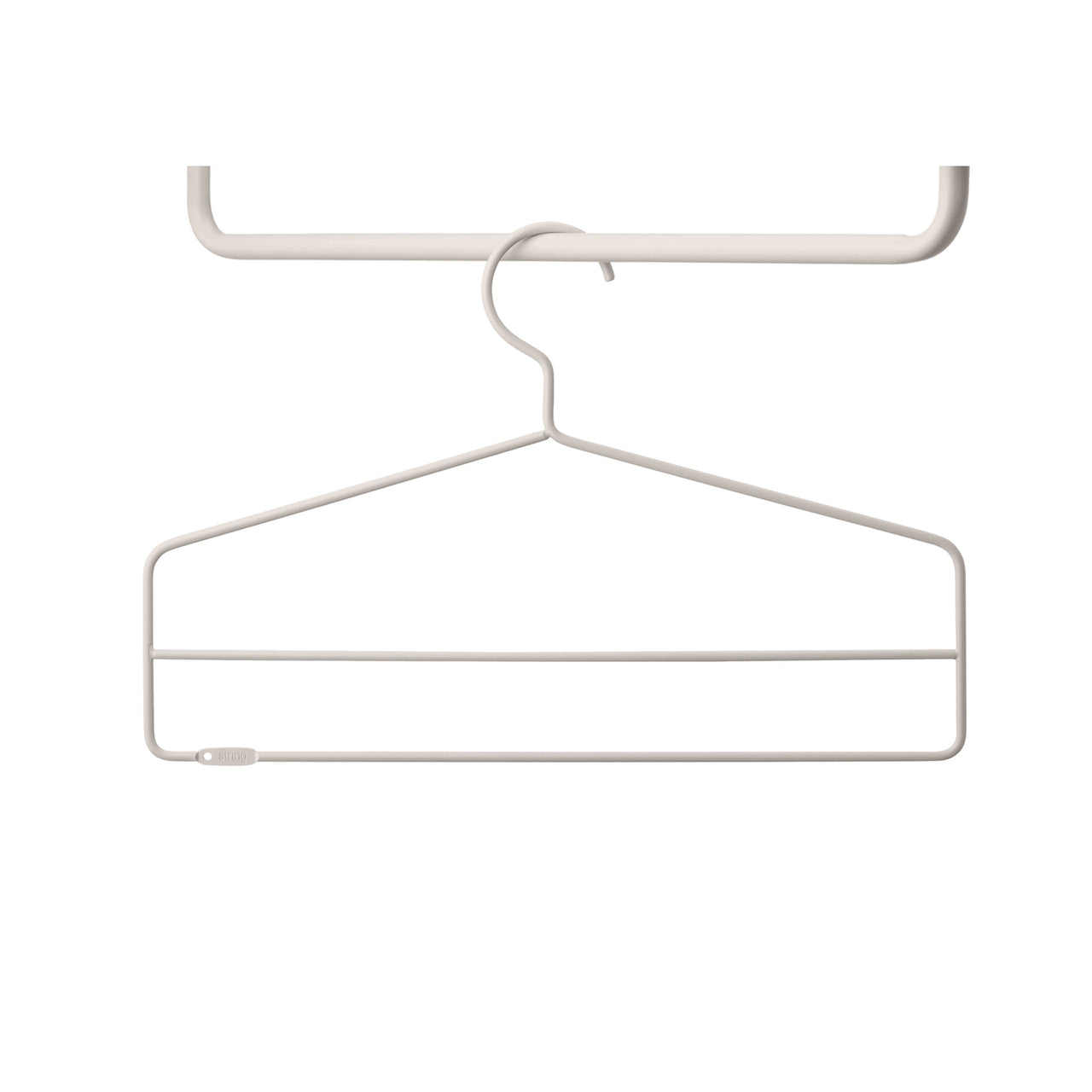 The String® System Coat Hanger is part of the range of accessories created to offer a complete storage solution for your hallway and wardrobe, where rods often are added. The coat hangers are designed with one extra wire thread to increase functionality and make it possible to hang several clothing items on one coat hanger.