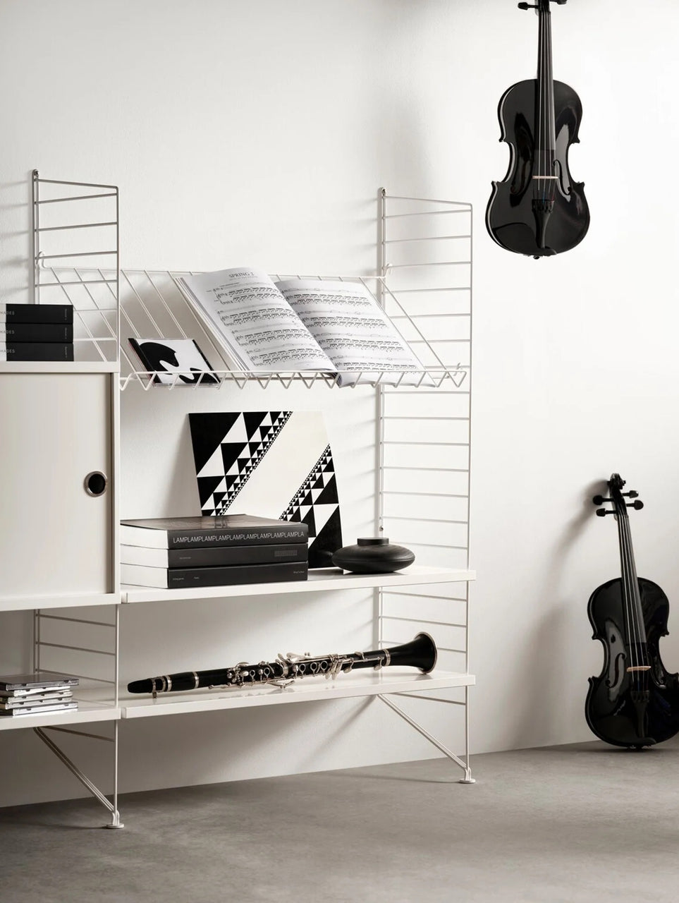 String System is a series of components featuring wire panels that offer almost unlimited combinations. The system is a multi-award winning design which has now become a design classic.