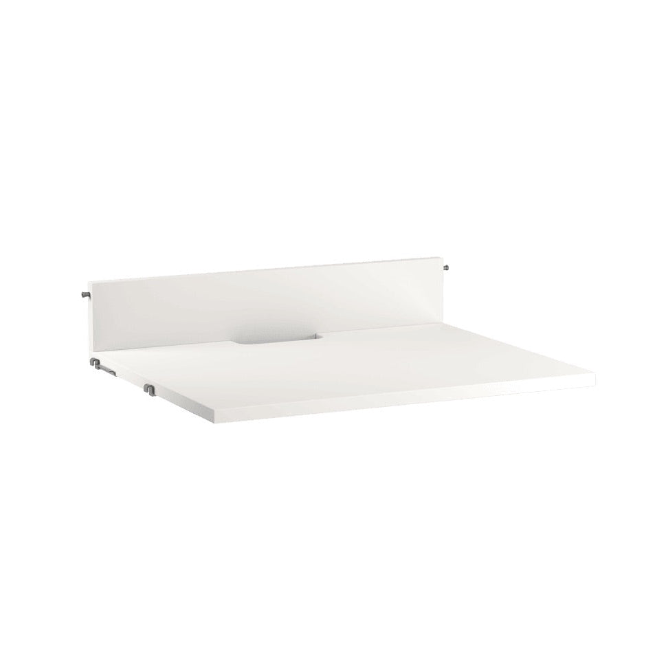 The String® System Media Shelf is available in one size, and fits into 30cm deep wire panels from String® System. The media shelf is designed to help you organize all cords and cables by letting them disappear behind the shelf without the risk of getting pinched between the wall and shelf. The media shelf can easily be turned into a workspace, or why not a drink table.
