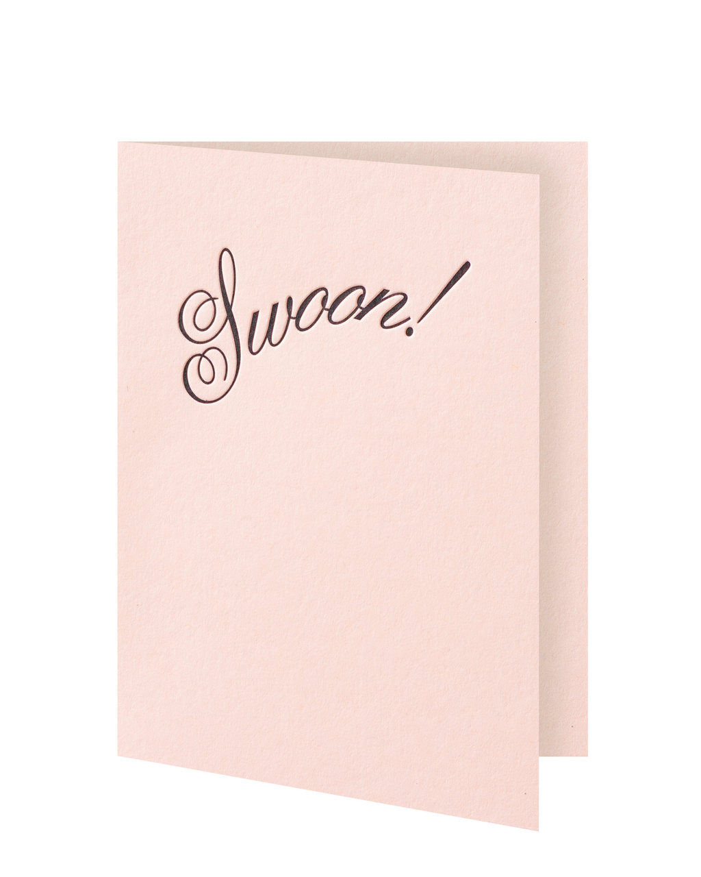 To swoon is to be overcome with admiration, adoration or another strong emotion... Whether it be a new love, an old love, a baby or just because; tell them. Letter pressed by hand on a textured blush stock in a Melbourne print workshop with black debossed copy.