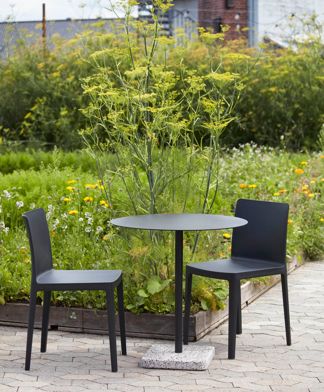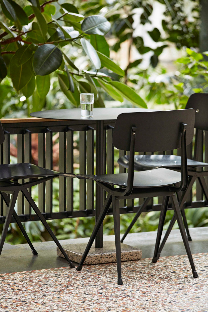 Swedish designer Daniel Enoksso's Terrazzo Table features a round- or square-shaped table top crafted in highly functional electro-galvanized steel and powder coated to make it extra resilient. For the designer, Terrazzo was an obvious choice to use as the base, partly due to its excellent durable properties, but more importantly, it has such a unique and distinctive finish that makes an effective contrast against the stark simplicity of the table top. Designed to withstand the outdoor environment, the table is suitable for all kinds of indoor and outdoor use.