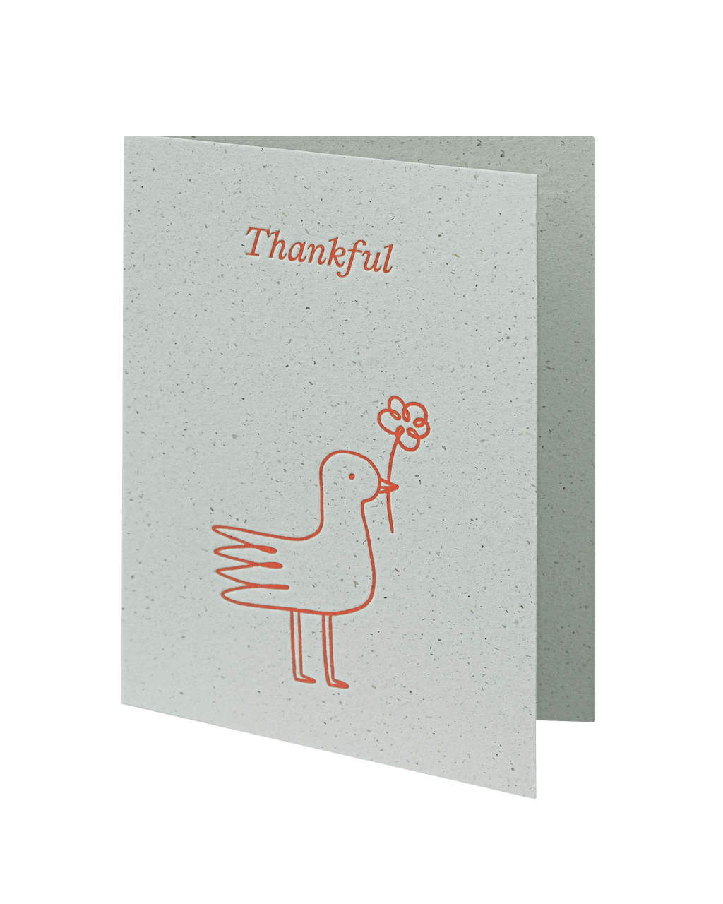 Because a thank you goes a long way... Featuring the sweetest illustration by Amy Colla, debossed in poppy red, on a weighty speckled duck egg blue coloured stock.