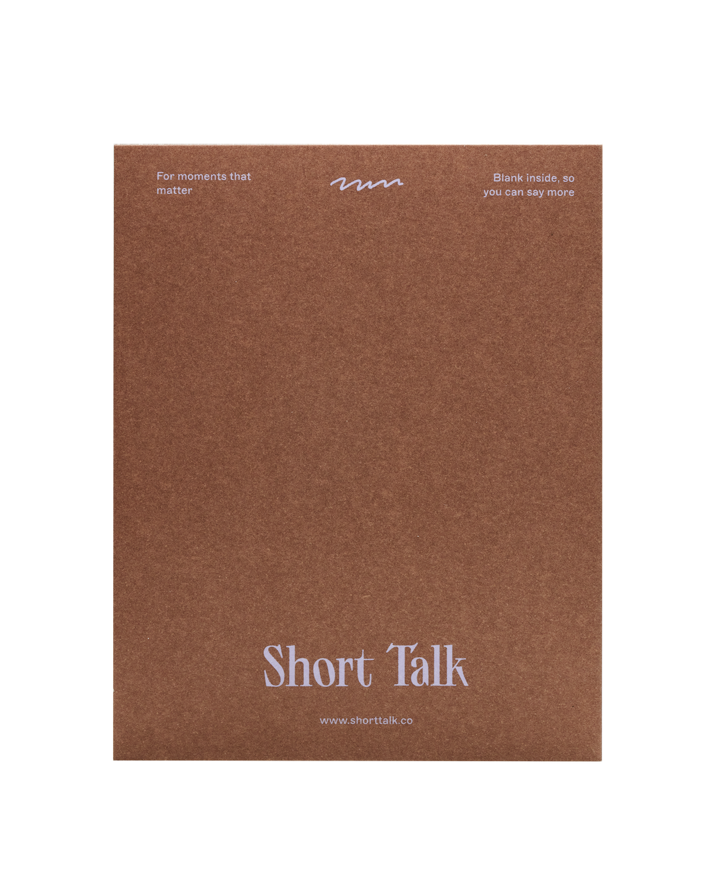 Materials: All cards have been mindfully made and printed in Melbourne. Short Talk cards measure 5.5inches x 4.25 inches and come with a premium paper vellum envelope meaning they are slightly sheer so you can see through to the word detailing on the front of the card.