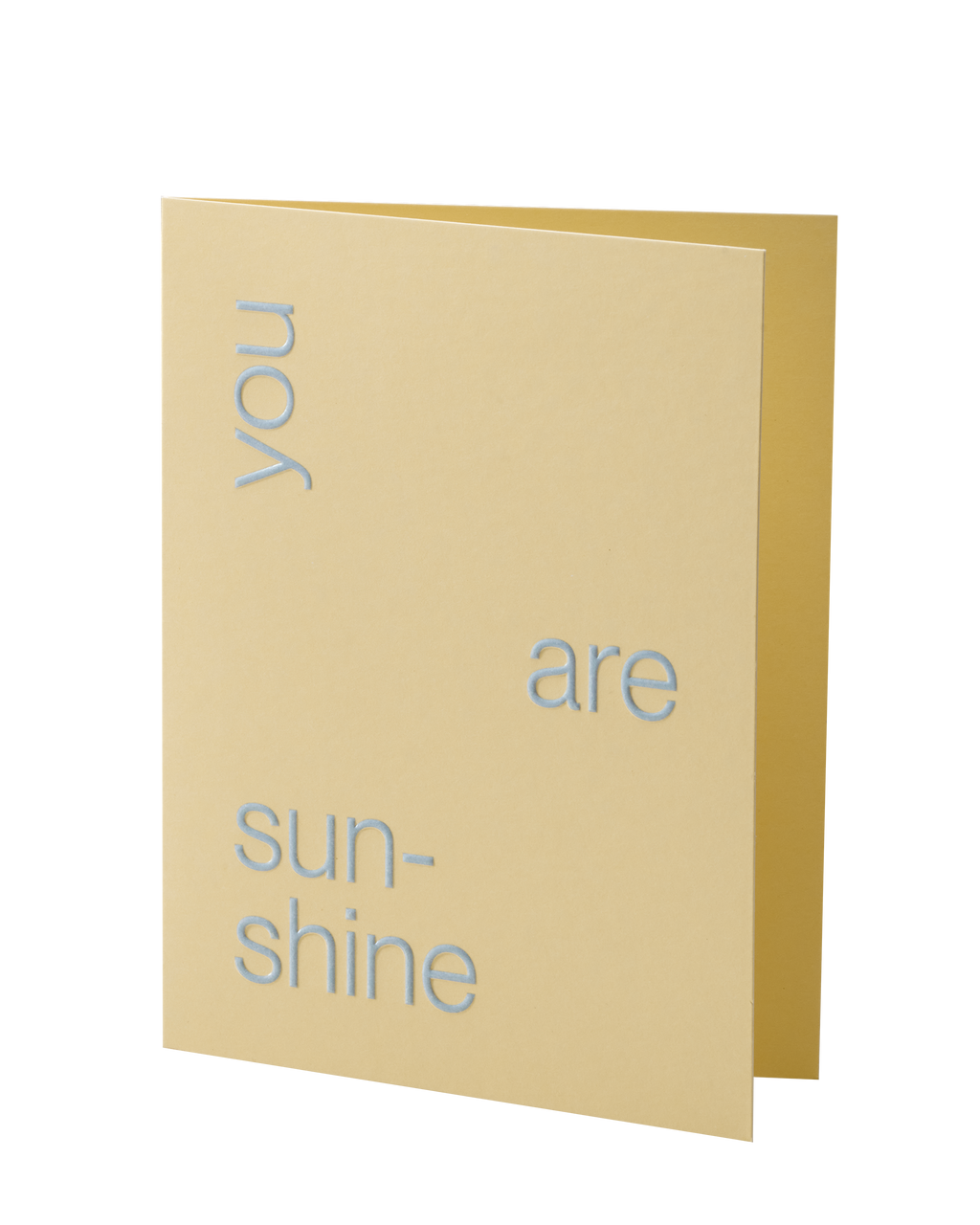 SUNSHINE in a card. For those who make life feel bright and toasty. Made in Melbourne, the card stock is FSC certified and 350gsm in weight. Design finishes include raised emboss detailing in blue with a clear foil finish. Blank inside and comes with a semi-translucent envelope.